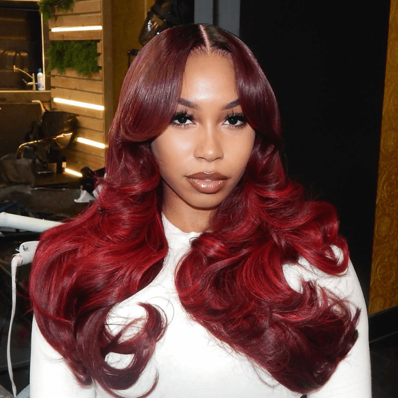 SZC 200 Density 13x4 Lace Front Burgundy Color Straight Human Hair Wig