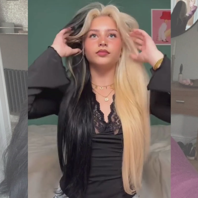 SZC Half Blonde Half Black Skunk Stripe 13x4 Lace Front Virgin Human Hair Wigs