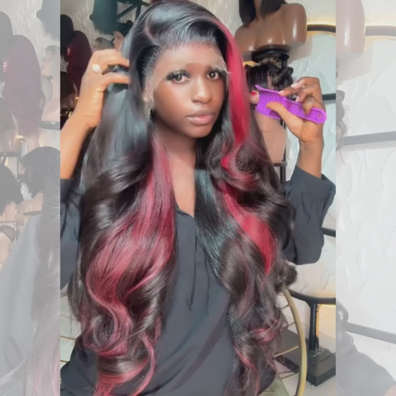 SZC 30 32 34 36 38 40 inch Red Brown Honey Blonde Highlights 13x4 Lace Front Human Hair Wigs